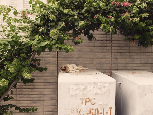 有一隻貓,經常出現在公司附近的住宅旁,今天看見牠正在變電箱上睡著午覺,偷偷摸摸地把牠拍了下來。這是貓兒常出現的地方,我總是在這裡看見牠。我想這是牠的花園,變電箱是牠的吊床。