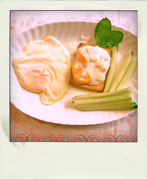 每週二是我的“幸福早餐日”,今天有我最愛的荷包蛋,清脆小黃瓜、營養餅乾加水果優格,襯上兩片薄荷葉,清新感十足。第一餐獻給法式情調音樂“ I am a new soul "。新的一天迎接新造的人!
